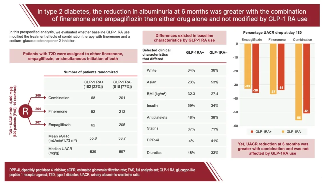 Finerenona e Empagliflozina: efeito na albuminúria é consistente mesmo em pacientes já em uso de GLP-1? O que o CONFIDENCE nos mostra
